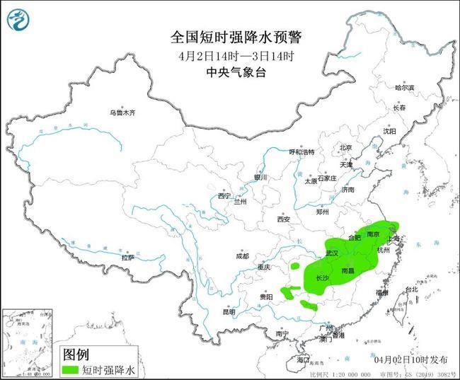 預(yù)計,4月2日14時至3日14時,湖北東南部、安徽中南部、江蘇南部、上海、湖南、江西中北部、浙江西部和北部等地部分地區(qū)有大到暴雨,其中,江西北部等地局地有大暴雨(100~150毫米)。上述部分地區(qū)伴有短時強(qiáng)降水(最大小時降雨量30~50毫米,局地可超過70毫米),局地有雷暴大風(fēng)或冰雹等強(qiáng)對流天氣。