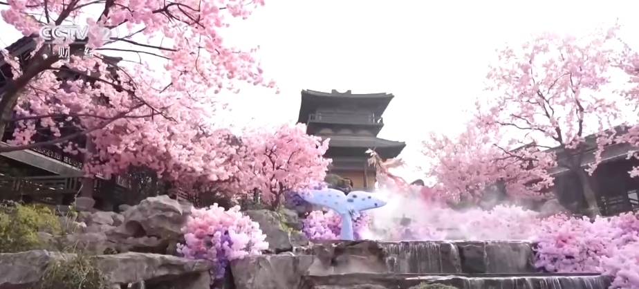除了賞花外,江蘇常州的東方鹽湖城推出山海主題花境,花瀑、花墻、花廊等布景隨處可見,配上故事感的“打卡”裝置以及山海主題人物實(shí)景走秀互動(dòng),將游客拉入山海奇幻神話世界。