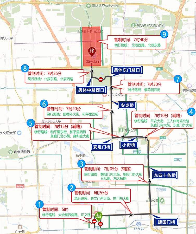 2024北京國(guó)際長(zhǎng)跑節(jié)北京半程馬拉松比賽將于4月14日(周日)7時(shí)舉行。起點(diǎn)設(shè)在天安門(mén)廣場(chǎng),終點(diǎn)設(shè)在奧林匹克公園中心區(qū)慶典廣場(chǎng)。比賽期間,部分道路將采取禁止機(jī)動(dòng)車(chē)和非機(jī)動(dòng)車(chē)通行的交通管理措施。比賽和繞行路線戳圖: