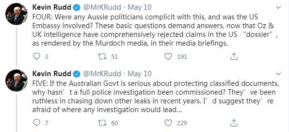 第四問、第五問則針對澳大利亞政府。他表示,澳政客是否也有份參與,背后是否有美國駐澳使館的推動?