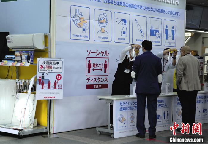 當?shù)貢r間5月4日,日本東京某商店對進店顧客進行體溫檢測。