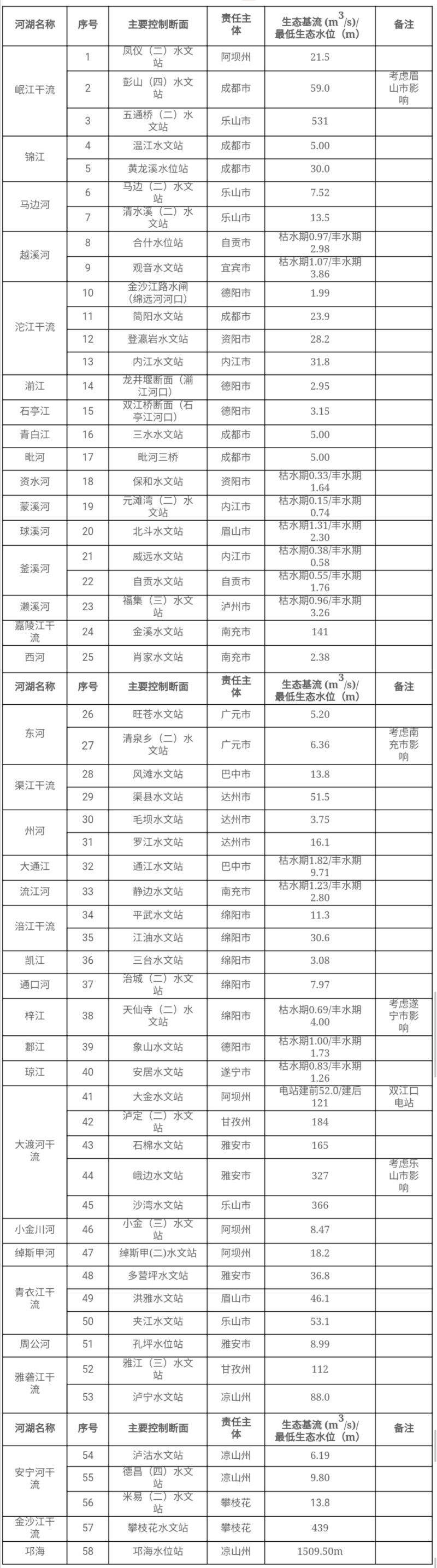 附:四川省第一批重點(diǎn)河湖生態(tài)流量保障目標(biāo)(試行)圖