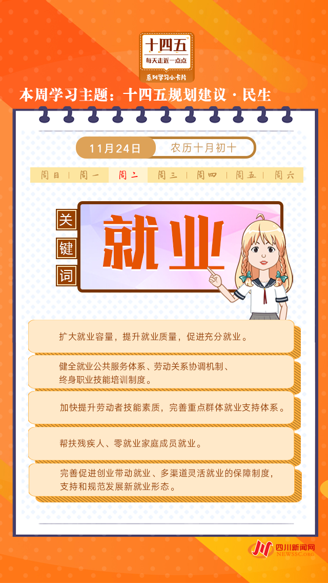 本周學習主題“十四五規(guī)劃建議·民生”系列,一張張學習卡帶你了解就業(yè)、收入、住房……那些與你息息相關的民生舉措!今天打卡學習“十四五”規(guī)劃建議中有關就業(yè)的舉措。