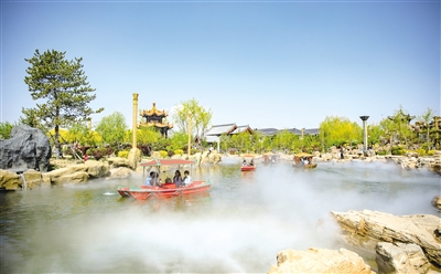 5月9日,游人在網(wǎng)紅惱包村的人工湖中坐船游覽美景。連日來,呼和浩特市氣溫逐步上升,綠葉、青草和鮮花為城市帶來了生機(jī)和活力,不少市民來到戶外,與親朋好友共度休閑時(shí)光。 (牛天甲)