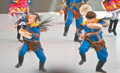 圖為鄂溫克族小演員在表演舞蹈。
