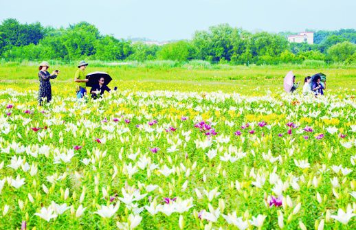 5月27日,江華瑤族自治縣沱江鎮(zhèn)天橋村生態(tài)農(nóng)業(yè)綜合產(chǎn)業(yè)園,游客在賞花、拍照。該產(chǎn)業(yè)園種植的百合既可觀賞又可食用,面積達(dá)100余畝,每畝產(chǎn)值可達(dá)3萬(wàn)元以上?;ê?dòng)了當(dāng)?shù)氐穆糜危龠M(jìn)了村民增收致富。(黎實(shí) 趙媛媛 攝影報(bào)道)