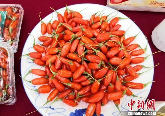 6月28日,甘肅省靖遠(yuǎn)縣2019年文化旅游農(nóng)特產(chǎn)品天津?qū)鐾平闀谔旖蚺e行。圖為枸杞鮮果展示?!⒂裉摇z