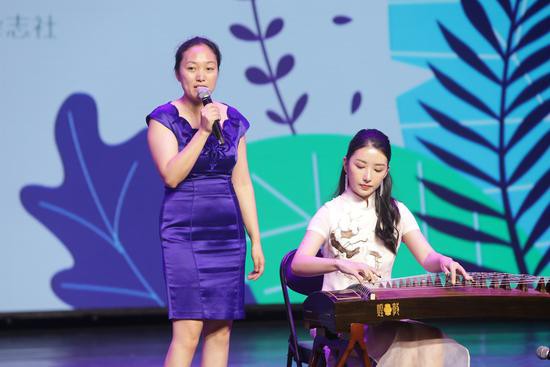 繪本劇也是在閱讀的基礎上延展的一種表演形式,是“閱讀+”的一次探索。本次活動的主持人,來自中央廣播電視總臺的主持人賀超,邀請中央音樂學院音樂教育學者管慧丹和青年古箏演奏家侯奕上臺,為大家展示 “閱讀+”的另一種表演形式——古詩詞唱讀。伴隨著悠揚的古箏琴聲,全場吟唱,在座的每位觀眾都深深地感受到中國傳統(tǒng)文化的魅力。