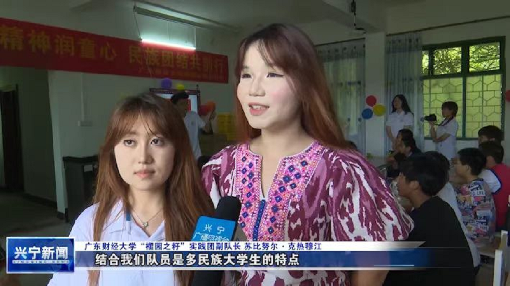 實(shí)踐團(tuán)隊(duì)員蘇比努爾 克熱穆江介紹到:在廣財(cái)大,校內(nèi)石榴樹(shù)生機(jī)勃勃,校園有“榴園”的雅稱(chēng)。我們的隊(duì)員是來(lái)自廣財(cái)?shù)母髅褡宕髮W(xué)生,是“榴園”內(nèi)的“石榴籽”,因此老師為我們?nèi)∶傲駡@之籽”實(shí)踐團(tuán)。