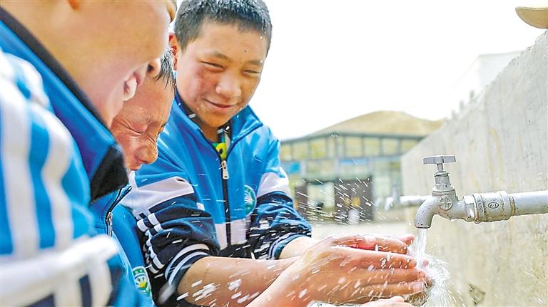 謝通門縣縣城自來水管網(wǎng)升級改造后,學(xué)生用自來水洗手。