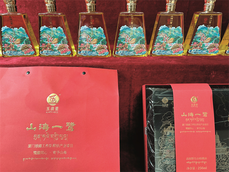 為了讓左貢縣的核桃油走出大山,走向市場(chǎng),廈門援藏工作隊(duì)在品牌建設(shè)和市場(chǎng)推廣上也下足了功夫。他們幫助注冊(cè)了“玉曲鷺”商標(biāo)。玉曲河是左貢的母親河,鷺則意味著鷺島,充分體現(xiàn)了廈門左貢兩地一家親的內(nèi)涵。2023年,左貢旺達(dá)食品有限公司及其產(chǎn)品核桃油分別被納入廈門市對(duì)口支援左貢縣消費(fèi)幫扶企業(yè)和產(chǎn)品推薦目錄,享受廈門每年3000萬以上的消費(fèi)幫扶額度,通過組織消費(fèi)幫扶活動(dòng),將左貢的核桃油帶到了廈門,帶到了全國(guó),讓更多消費(fèi)者品嘗到了這份來自高原的珍貴禮物。截至2023年底,公司累計(jì)銷售核桃油21.5萬瓶,產(chǎn)值1600萬元以上。