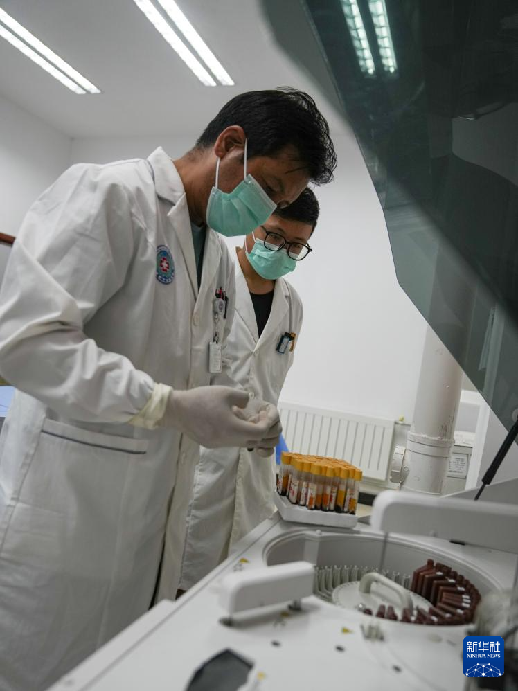 8月30日,林周縣強嘎鄉(xiāng)衛(wèi)生院醫(yī)生東智才讓使用生化分析儀檢測患者肝功能和腎功能狀況。新華社記者 晉美多吉 攝