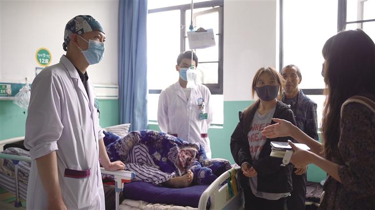 天津市第十批援藏干部、昌都市藏醫(yī)院外科行政副主任陳陽(左一)正在查房。記者 貢曲羅杰 鄭常容