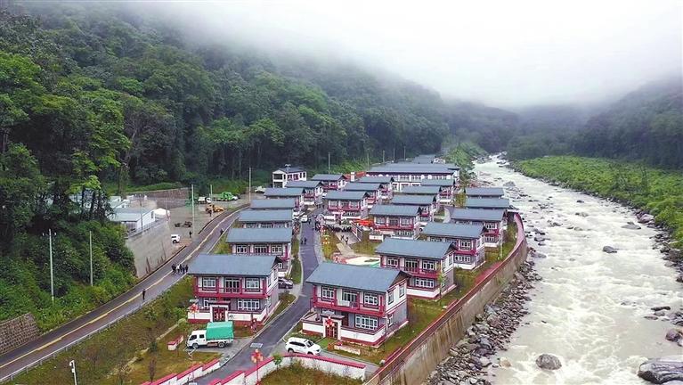 上海對口援建的邊境小康示范村亞東縣龐達村全景。