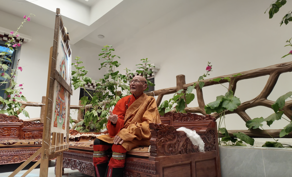 嘎瑪德勒出身嘎瑪嘎赤畫派技藝最主要的傳承家族,與嘎瑪寺相伴而生。長期以來,老人不分親疏遠近,免費對所有上門學生傾囊相授。