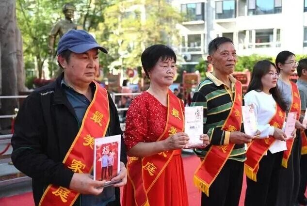9月25日,寧夏銀川市長城花園社區(qū),居民領(lǐng)取社區(qū)“最美家庭”獎(jiǎng)。