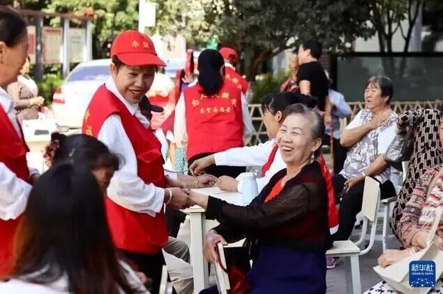 民族團(tuán)結(jié)進(jìn)步創(chuàng)建進(jìn)社區(qū)。這是9月20日,獲評(píng)“全國民族團(tuán)結(jié)進(jìn)步模范集體”的昆明市盤龍區(qū)聯(lián)盟街道小壩社區(qū)志愿者為居民提供志愿服務(wù)。(莫欣竹 攝)