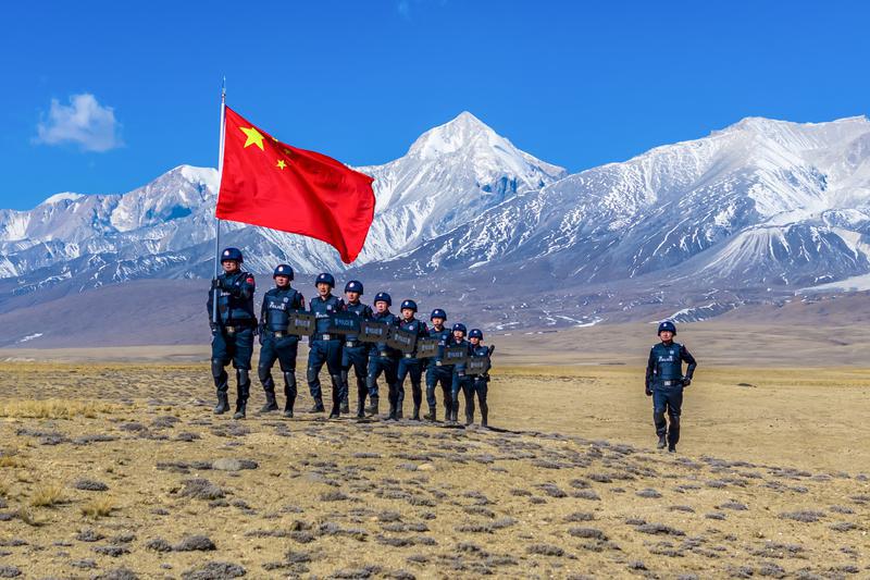里孜出入境邊防檢查站駐地海拔4772米,是西藏海拔最高的出入境邊防檢查站。圖為2024年4月8日,里孜邊檢站民警在進行“兩翼”巡邏。記者 楊子彥 攝