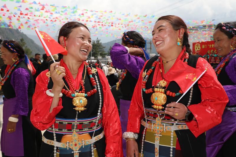 3月28日上午,吉隆出入境邊防檢查站移民管理警察與駐地各單位干部職工及廣大人民群眾共同開展系列活動紀念西藏民主改革 65 周年。圖為參加紀念西藏民主改革65周年系列活動的駐地群眾臉上洋溢著幸福的笑容。記者 旦增蘭澤 通訊員 索朗扎西攝