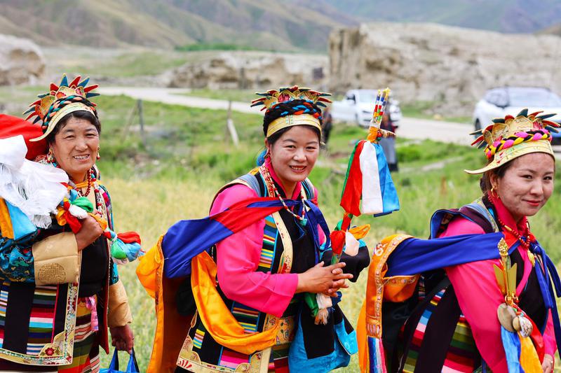 7月21日,西藏山南市瓊結(jié)縣瓊結(jié)鎮(zhèn)雪巴村民參加“望果節(jié)”祈福,預祝農(nóng)業(yè)豐收,歌頌美好生活。圖為望果節(jié)上轉(zhuǎn)田的當?shù)貗D女。記者 白瑪澤旺 通訊員 倫珠澤仁 攝