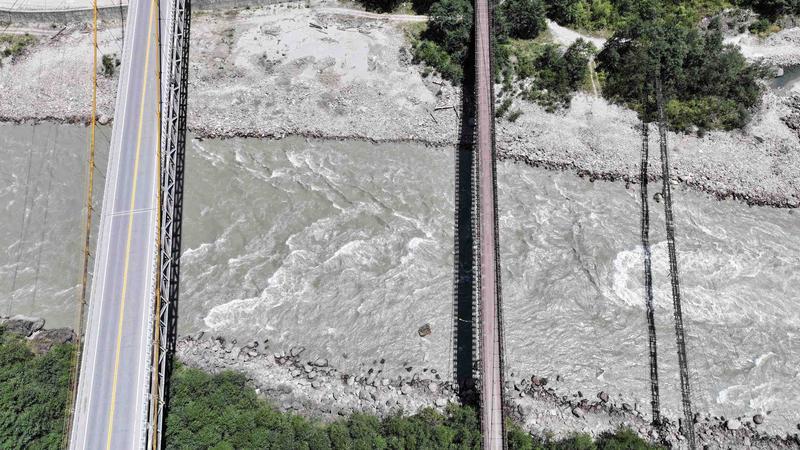 1954年12月25日川藏、青藏公路同時通車拉薩,西藏日報聯(lián)合四川日報、青海日報開展的“大道向前 天路放歌——紀念‘兩路’建成通車70周年”聯(lián)合采訪。圖為8月20日記者在通麥鎮(zhèn)拍攝的橫跨在易貢藏布之上的不同年代的三座橋。西藏日報四川日報川藏線聯(lián)合報道組攝