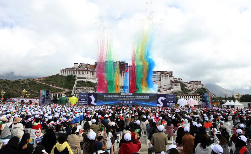 8月21日上午,2024中國西藏第五屆跨喜馬拉雅國際公路自行車極限賽在布達拉宮廣場開幕。記者 白瑪澤旺 攝