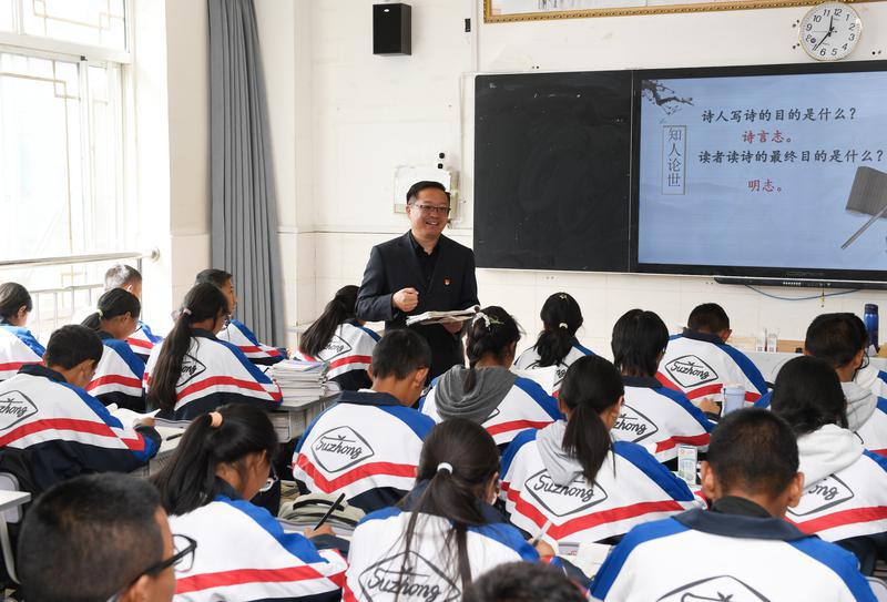 今年是對口支援西藏工作30周年。圖為江蘇省援藏教師、拉薩江蘇實驗中學校長殷飛正在授課。記者 旦增蘭澤 攝