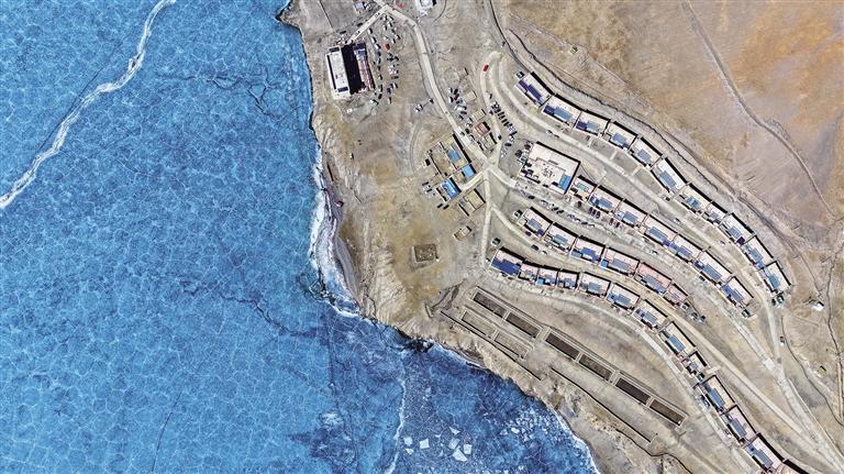 浪卡子縣打隆鎮(zhèn)推瓦村,南部與不丹接壤,邊界線長達25公里,是世界上海拔最高的純牧業(yè)行政村之一。全村共有40戶人家,153位村民在此生活。2月6日,記者踏入推瓦村,首先映入眼簾的是遠(yuǎn)處的普姆擁措湖,湖面在陽光的照耀下波光粼粼,與錯落有致的雪山相互映襯,構(gòu)成一幅絕美的畫面。沿著平坦的柏油馬路前行,道路兩旁整齊排列的路燈和一排排以溫馨黃色為主色調(diào)的邊境小康房格外引人注目。漫步在臨近冰湖的村路上,悠然愜意之感油然而生,雪山、湖泊、村落與村民們和諧相融,共同繪就了一幅寧靜祥和的鄉(xiāng)村畫卷。