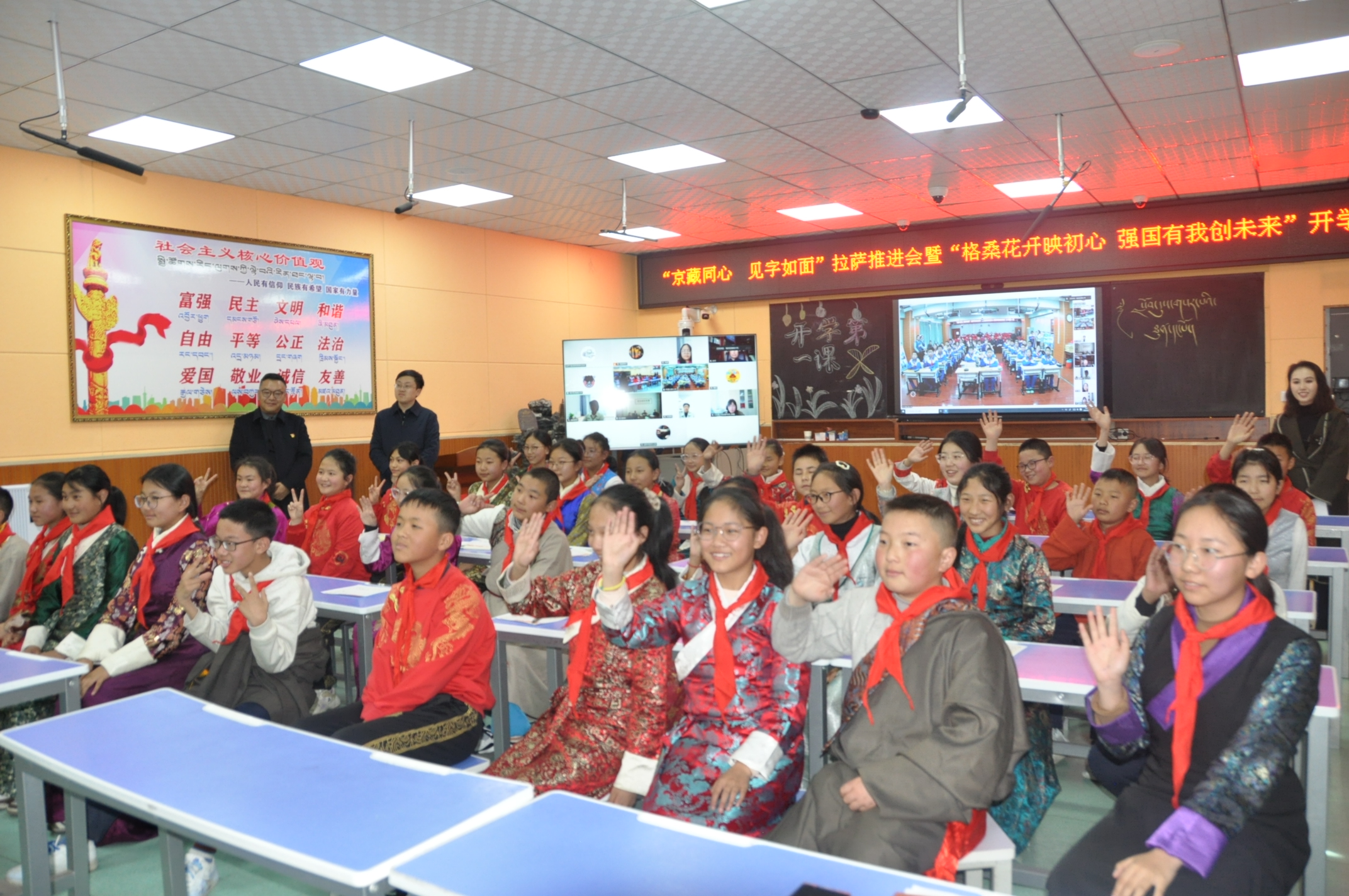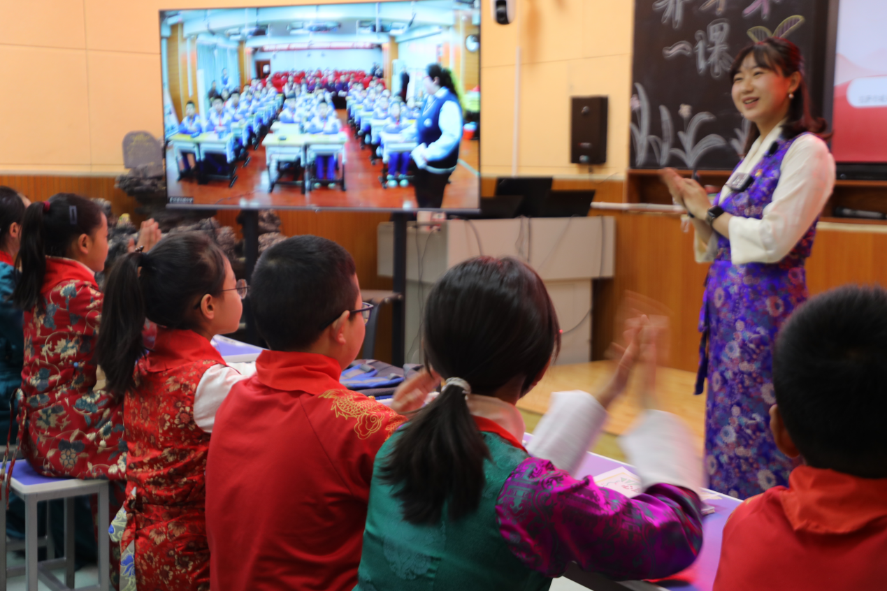 在課堂互動(dòng)中,西藏的同學(xué)紛紛道出自己的心聲,他們渴望前往首都,和北京的同學(xué)們面對(duì)面交流。拉薩市城關(guān)區(qū)海城小學(xué)六年(3)班央金巴宗說(shuō),“希望這次活動(dòng)能加深京藏兩地的關(guān)系,也希望民族團(tuán)結(jié)的種子在我們的心田生根、發(fā)芽;中華民族一家親,愿我們的國(guó)家更加團(tuán)結(jié)友愛(ài)!”