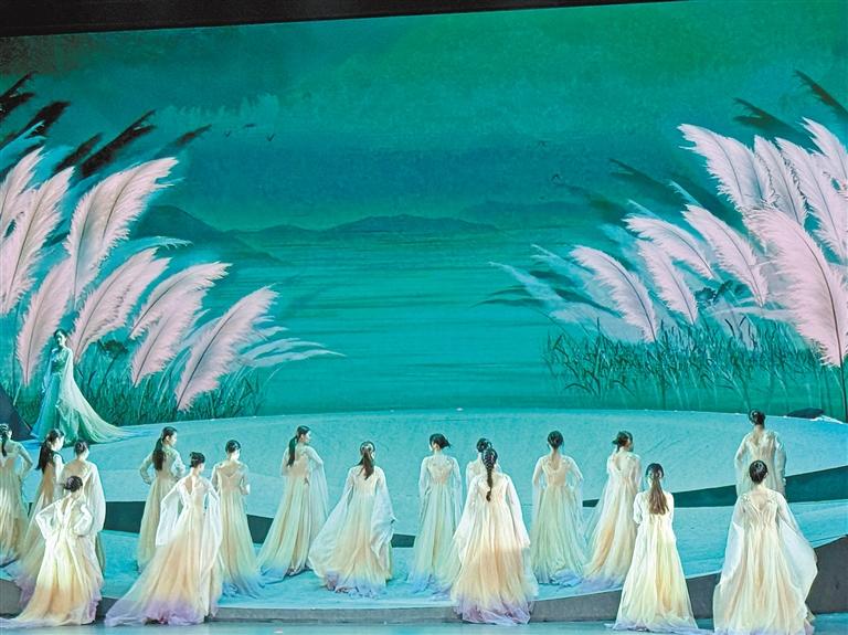 劇中的舞段既有取材于《詩(shī)經(jīng)》的女子群舞《蒹葭蒼蒼》,也有凸顯格薩爾王英雄氣概的《格薩爾王》和《英雄足跡》,以及引導(dǎo)人們積極向上的《鳳凰于飛》。觀眾可以近距離地領(lǐng)略展現(xiàn)漢藏農(nóng)耕文化、體現(xiàn)天人合一宇宙觀的《其耕澤澤》,以及體現(xiàn)民族融合的《悠悠我心》《茶城歡歌》《鼓舞中華》等作品。