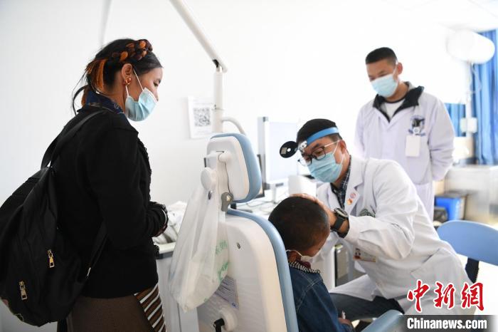 上海五官科醫(yī)院耳鼻喉科醫(yī)生曹鵬宇給藏族小朋友診病。 孫國根 攝