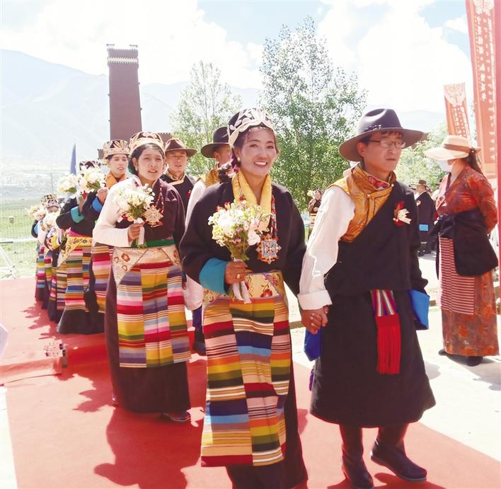 6月28日,寧墨情深·禮贊百年——愛在墨竹百對佳人集體婚典在拉薩市墨竹工卡縣甲瑪鄉(xiāng)松贊干布紀(jì)念館盛大舉行,百對佳人迎建黨百年、結(jié)百年姻緣。