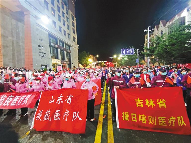 血脈相連、共克時(shí)艱。在日喀則市抗擊新冠肺炎疫情的緊要關(guān)頭,山東省委、省政府和吉林省委、省政府第一時(shí)間組織支援抗疫醫(yī)療隊(duì),馳援日喀則。全體醫(yī)療隊(duì)隊(duì)員響應(yīng)組織號(hào)召,主動(dòng)請(qǐng)纓、逆行出征,帶著山東、吉林人民的深情厚誼,以生命守護(hù)生命、以大愛砥礪仁心,苦戰(zhàn)鏖戰(zhàn)40多個(gè)日日夜夜,為日喀則奪取抗擊新冠肺炎疫情全面勝利作出了突出貢獻(xiàn)。