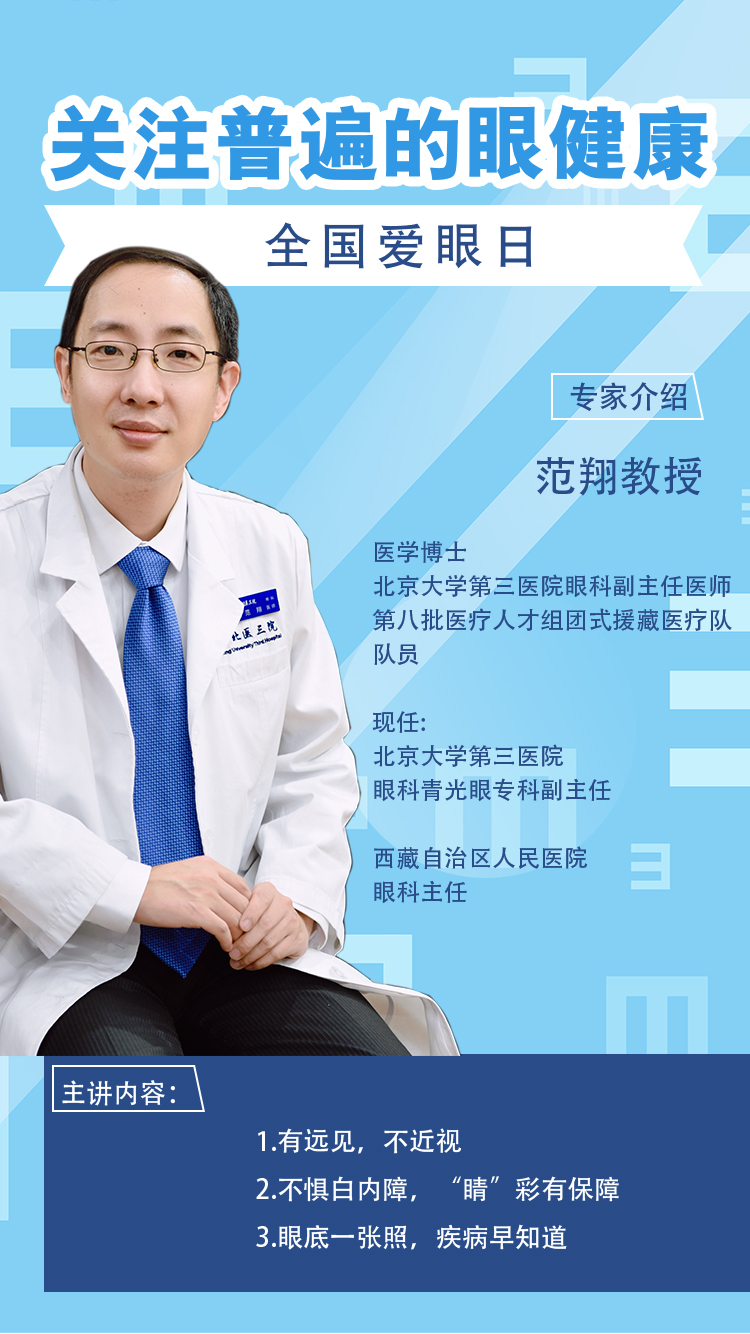 本期人物是來自北京大學第三醫(yī)院眼科專家、副主任醫(yī)師范翔,為大家總結眼病防治的常見知識。讓我們一起關注全年齡段全生命周期普遍的眼健康。