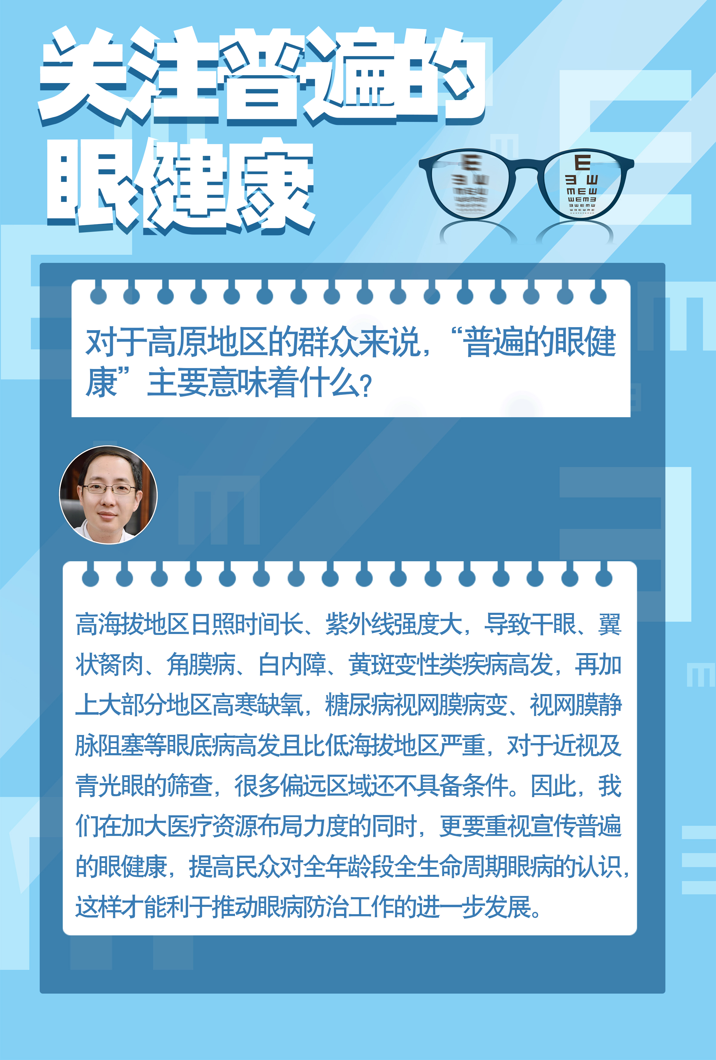 眼睛是人類感官中最重要的器官之一,也是人體最容易罹患疾病的器官之一。著重關注兒童青少年、老年人兩個重點人群,防治近視、白內障、眼底病、青光眼、角膜盲等重點眼病,提高全社會對全年齡段全生命周期普遍眼健康的認識,尤為重要。