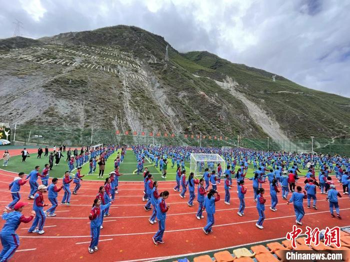 圖為德欽縣第一小學(xué)的學(xué)生們在上課間操?!】姵?攝