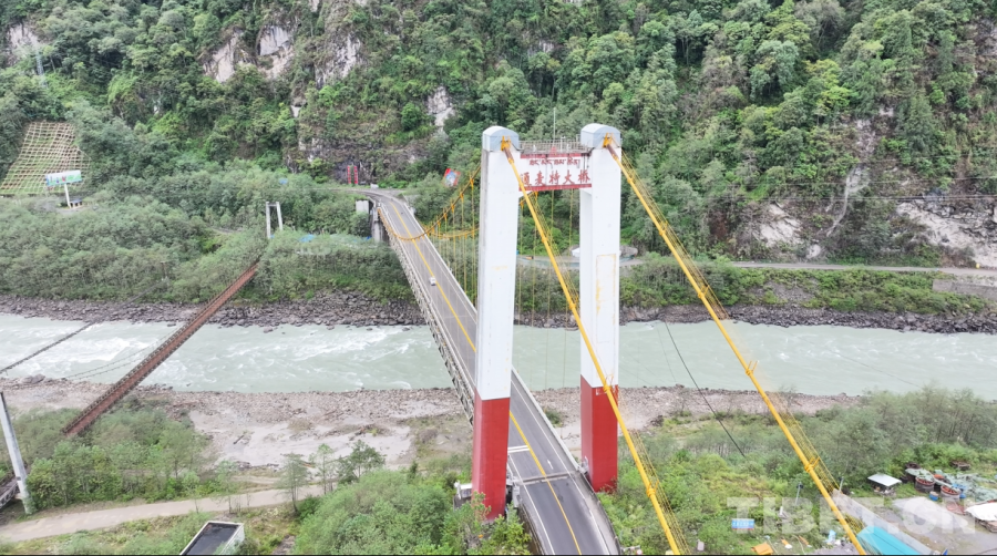 跨江而建的單塔單跨鋼桁懸索橋——通麥特大橋 攝影:達(dá)次