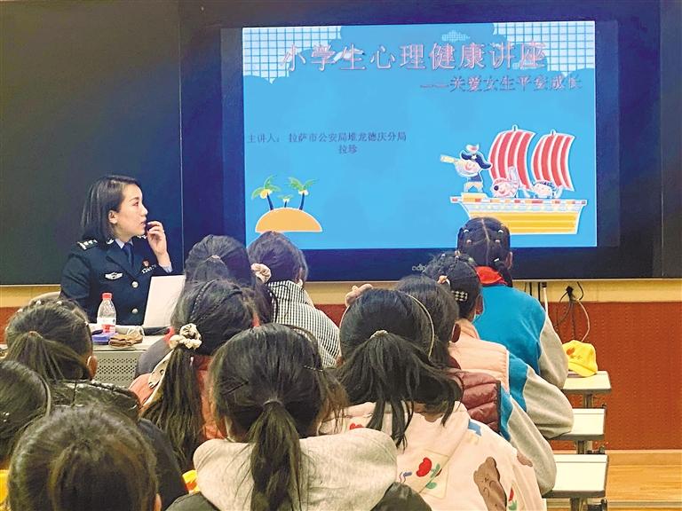 東嘎街道派出所民警深入校園,面向女生開展法治講座活動(dòng)。