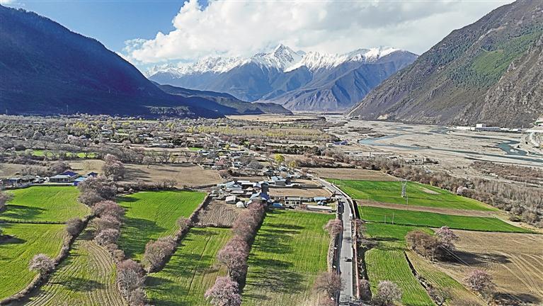 生機(jī)四溢的油菜花田、灼灼綻放的桃花,翠綠欲滴的春茶,黃、粉、綠的交織讓易貢之春充滿韻律。