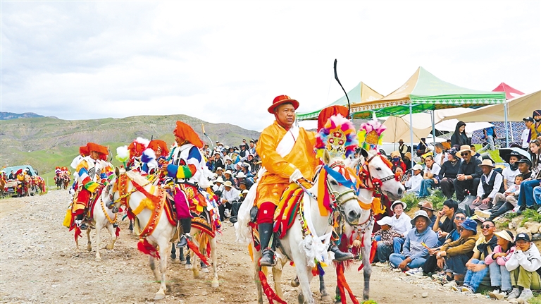 在邊交林鄉(xiāng)當(dāng)杰村“望果節(jié)”活動(dòng)現(xiàn)場,隨著激昂的《運(yùn)動(dòng)員進(jìn)行曲》,當(dāng)杰村“平措林望果節(jié)”活動(dòng)拉開帷幕,38名馬術(shù)運(yùn)動(dòng)員、38名射箭運(yùn)動(dòng)員在2萬多名觀眾的歡呼聲中邁入現(xiàn)場。