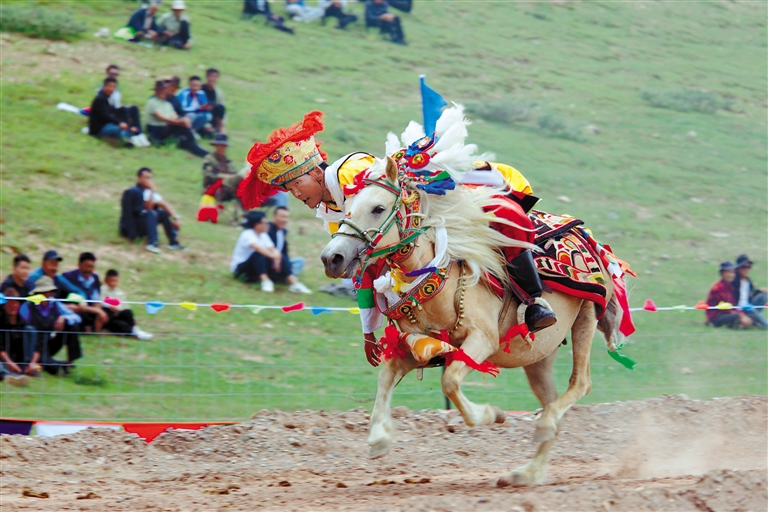 據(jù)悉,賽馬是西藏各地為慶祝豐收舉行“望果節(jié)”(賽馬節(jié))時(shí)的傳統(tǒng)慶典活動(dòng),是群眾最為喜愛、流傳最廣的體育運(yùn)動(dòng)之一。“望果節(jié)”作為一項(xiàng)具有悠久歷史的傳統(tǒng)節(jié)日,每年都會(huì)在林周縣加榮村如期舉行。