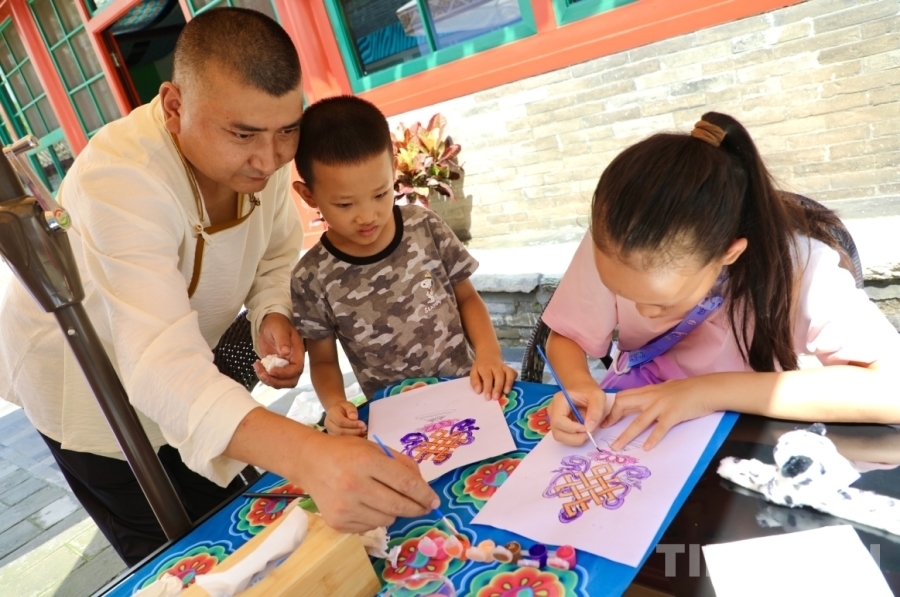 8月9日,中華民族優(yōu)秀文化體驗(yàn)項(xiàng)目輪展活動(dòng),在北京中華民族共同體體驗(yàn)館(原蒙藏學(xué)校舊址)舉行。國(guó)家級(jí)非物質(zhì)文化遺產(chǎn)代表性項(xiàng)目熱貢藝術(shù)省級(jí)代表性傳承人、唐卡畫師扎西尖措?yún)⒓恿舜舜握寡莼顒?dòng),將一場(chǎng)精彩的唐卡藝術(shù)體驗(yàn)課帶到了首都。