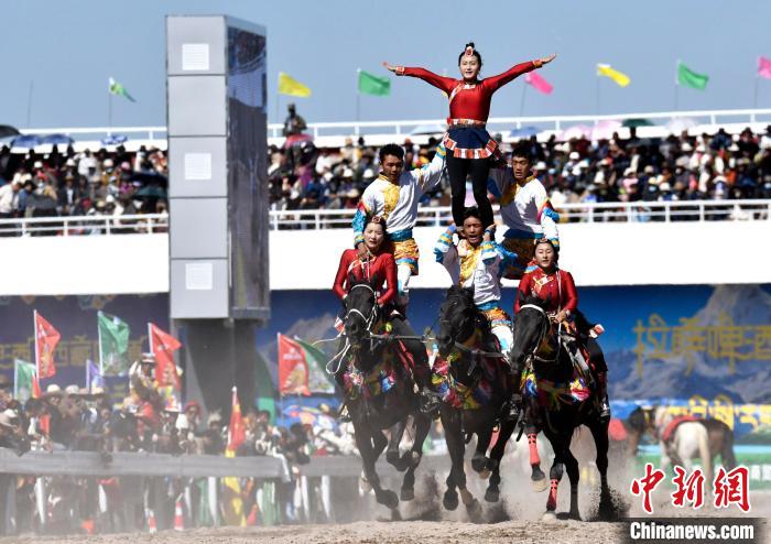 8月10日,2024年那曲恰青賽馬節(jié)暨第三屆“鄉(xiāng)村振興 那曲奮進(jìn)”活動(dòng)開幕式在那曲市賽馬場(chǎng)舉行,精彩的文藝歌舞、馬術(shù)表演等展示著羌塘草原上的無窮魅力和活力。圖為開幕式上的馬術(shù)表演。中新社記者 李林 攝
