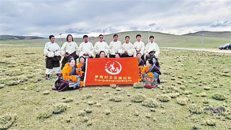 那曲市色尼區(qū)那曲鎮(zhèn)羅崗村文藝演出隊(duì)合影。通訊員 晉美頓旦 記者 王超 攝