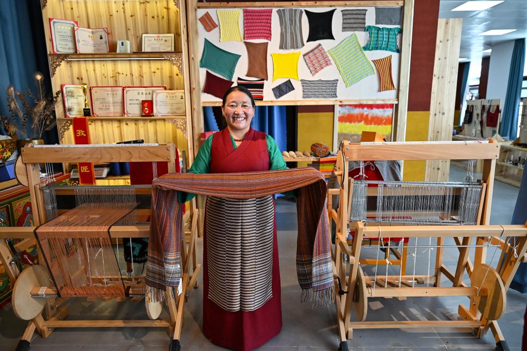 據(jù)了解,2023年,阿佳格桑氆氌農(nóng)民專業(yè)合作社經(jīng)營額約45萬元,凈利潤10.6余萬元。合作社工人也從1名增加到12名,實(shí)現(xiàn)了由“工人”向“工匠”的轉(zhuǎn)變,工資從過去的每月3000元增加到4800元。在共同研發(fā)的新式機(jī)器上,上海工匠與江孜手工藝人也共同織出了新的“氆氌致富經(jīng)”。