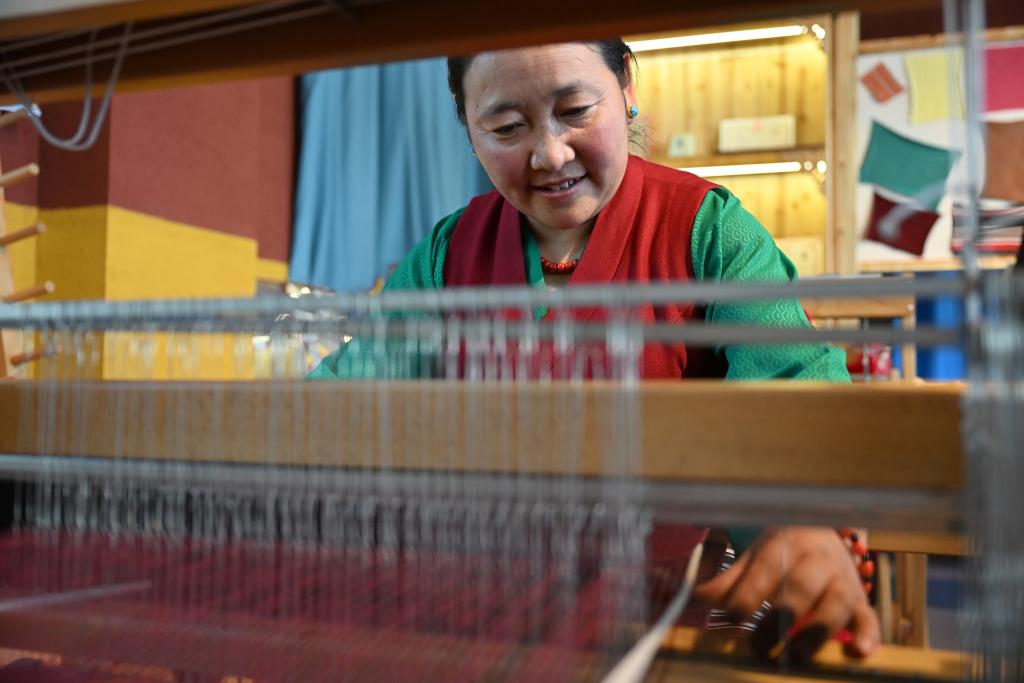 走進(jìn)江孜縣阿佳格桑氆氌農(nóng)民專業(yè)合作社,織機(jī)“咔嗒”作響,氆氌的紋理在手工藝人的手中逐漸顯現(xiàn),她們用自己的雙手編織出了更加美好的未來。