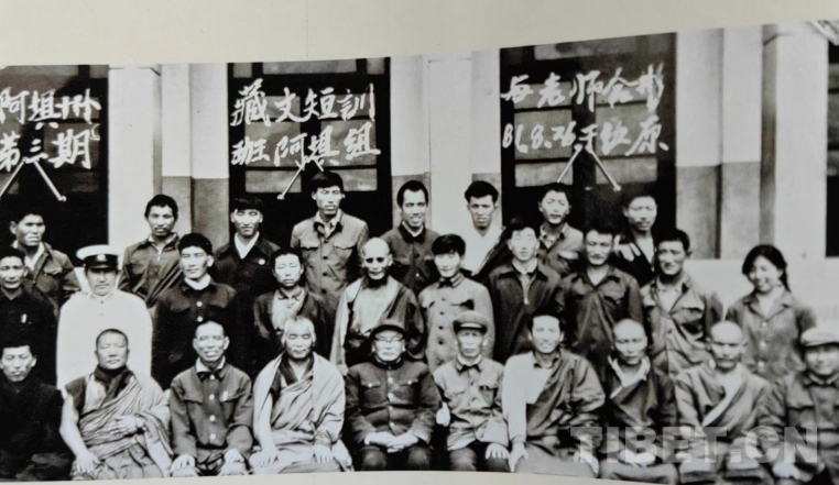 圖為阿壩州第三期藏文短訓(xùn)班時阿壩組與毛爾蓋·桑木旦合影(圖片由作者提供)