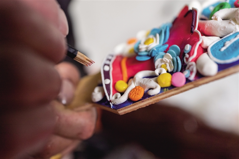 當(dāng)記者聊起如今市面上也有機(jī)器雕刻的酥油花時(shí),師傅羅布次仁停下手中的活,說(shuō)道:“酥油花是千年傳承下來(lái)的瑰寶,講究一年換一新,同樣也講究人們制作時(shí)注入的美好愿望和祝福。早在2013年,它就被列入西藏自治區(qū)級(jí)非物質(zhì)文化遺產(chǎn)名錄。如今雖然出現(xiàn)了機(jī)器雕刻的酥油花,但它們?nèi)绷舜鄠鞯牧α?,機(jī)械復(fù)制不了指尖傳遞的溫度。我們要傳承好這門(mén)技藝?!?/p>