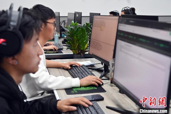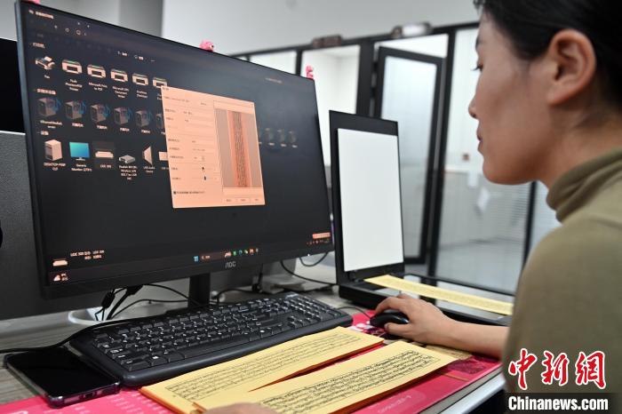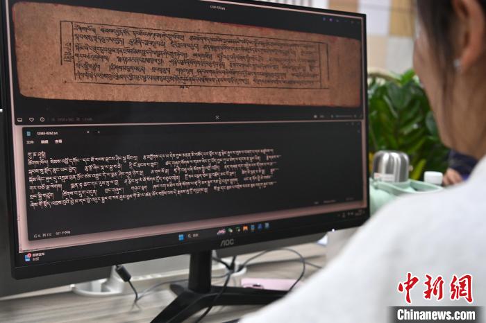 2月27日,在甘肅甘南藏族自治州碌曲縣益西達(dá)吉科技有限公司內(nèi),工作人員正在進(jìn)行藏文古籍?dāng)?shù)字化相關(guān)工作。該公司主要從事民族古籍?dāng)?shù)字化建設(shè)和古籍文獻(xiàn)數(shù)據(jù)庫(kù)建設(shè),自2019年以來(lái),承擔(dān)西藏、四川、甘肅等省區(qū)的藏文古籍?dāng)?shù)字化項(xiàng)目。圖為工作人員用該公司研發(fā)的藏文信息處理系統(tǒng)對(duì)古籍?dāng)?shù)字化內(nèi)容進(jìn)行檢查。中新社記者 九美旦增 攝