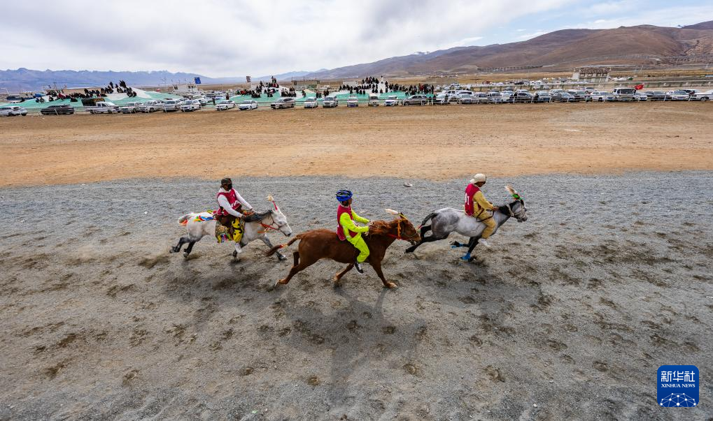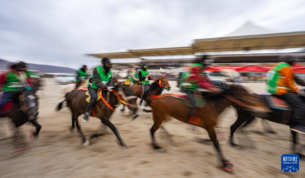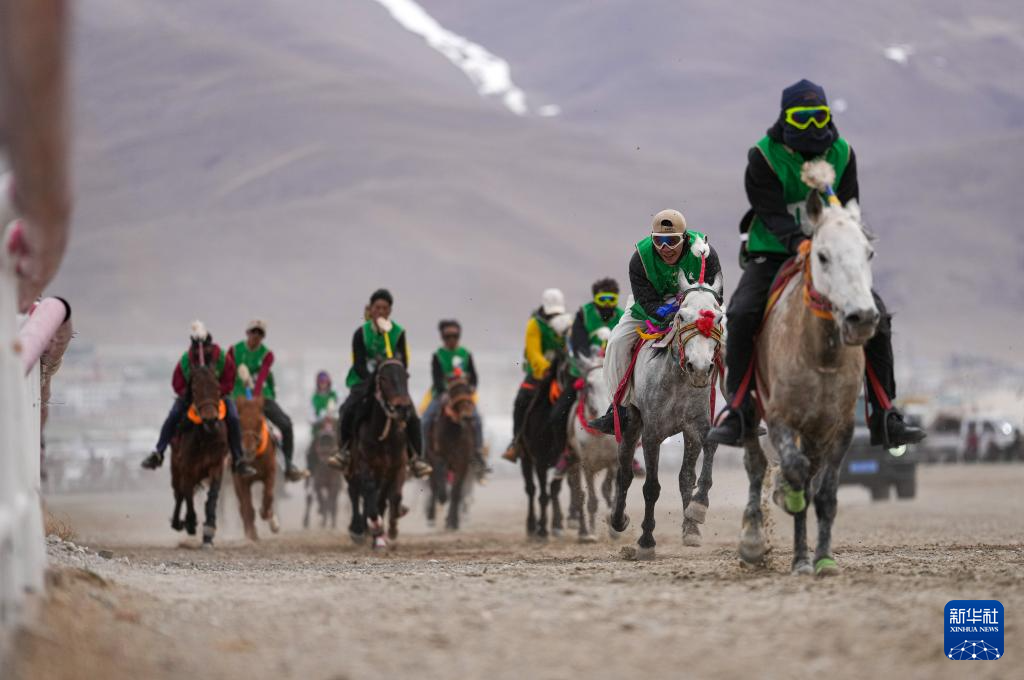 4月27日,騎手在進行賽馬比賽。新華社記者 晉美多吉 攝